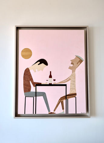 Pour la première fois l'artiste a créé un mélange de marqueterie de bois et de peinture.